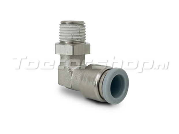 Sie können diese rechtwinklige Kupplung also in einen 1/4 BSP Eingang schrauben und einen 10 Millimeter Schlauch daran anschließen.